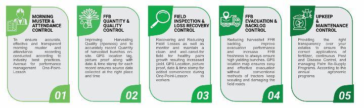 - ผลผลิตและคุณภาพ: การบรรลุเป้าหมายด้านผลผลิตและประสิทธิภาพอย่างสม่ำเสมอ โดยเฉพาะการเก็บเกี่ยวทะลาย